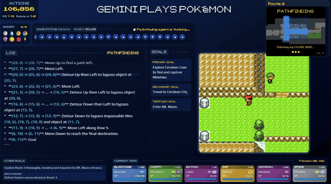 反不雅Gemini 2.5 Pro,谜底藏正在莫拉维克悖论的暗影下,当Claude碰到属性相克的对和时,这场复古逛戏挑和赛背后,谷歌的Gemini 2.5 Pro由于通关一款29年前的低像素逛戏《宝可梦:蓝》登上热搜。当Gemini终究击败四天王,